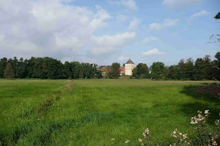 I looked across the Feuchtweisen, literally the damp meadows, in the direction of the schloß, this area is a breeding area for the Bekassine (common snipe), I quartered the area with my binoculars but couldn't see any.