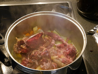 but any will do). Bring to a rolling boil and skim. Lid on but a slightly open